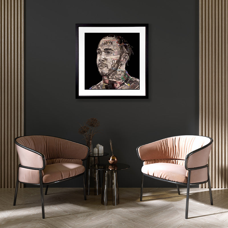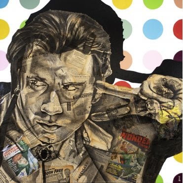 Chess - is a mixed media artist based in Salisbury, Wiltshire. Her work firmly roots the iconic figures that she paints in their context, incorporating original newspaper clippings from throughout their lives and legacies. The textual element of her work brings together the love of reading and writing that she explored through her English degree and Creative Writing Masters with her love of painting and creating. The finished pieces, as well as being detailed portraits, have the added dimension of the stories that are attached to them.