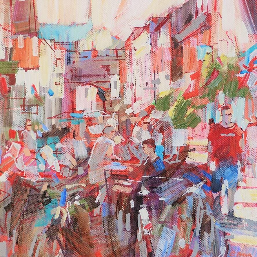 I now am a fine artist producing mainly one subject, being street scenes of the world. I like to evoke a sense of atmosphere and the feeling of being their through a loose style taking my influence from the Impressionists and Fauvism, using my visualising ways to produce the work. I take on commissions and along side this I also teach workshops and give live demonstrations.