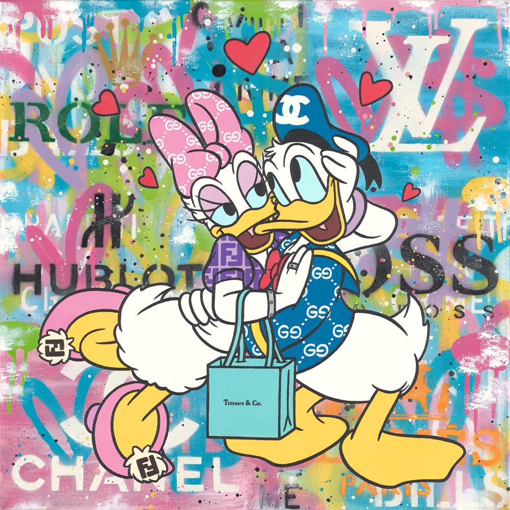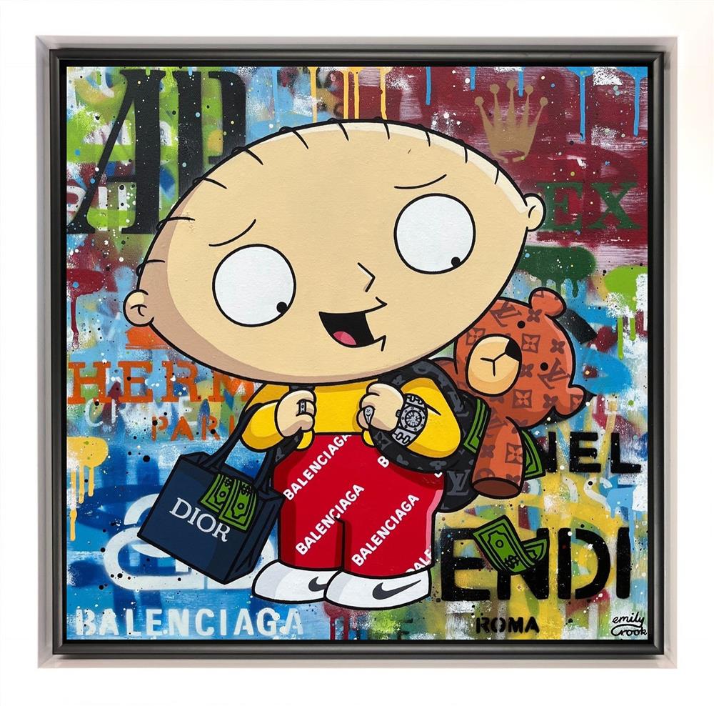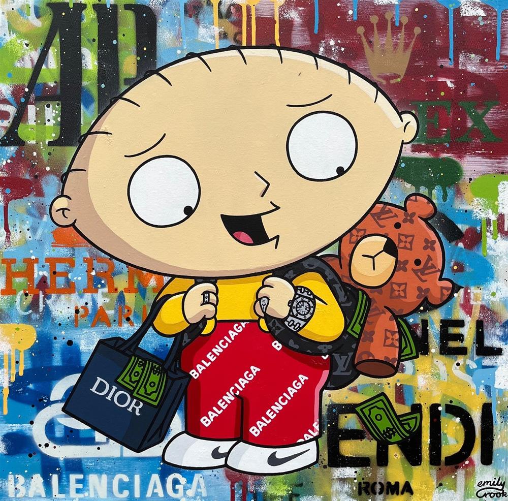 Influenced by pop culture icons, fashion and music, Emily Crook’s eye-catching creations blend high-end designer themes with a riot of colour and a nod to street and graffiti-style artwork. The vibrancy and clever blending of themes make these works a perfect example of contemporary art and the many influences it draws from.