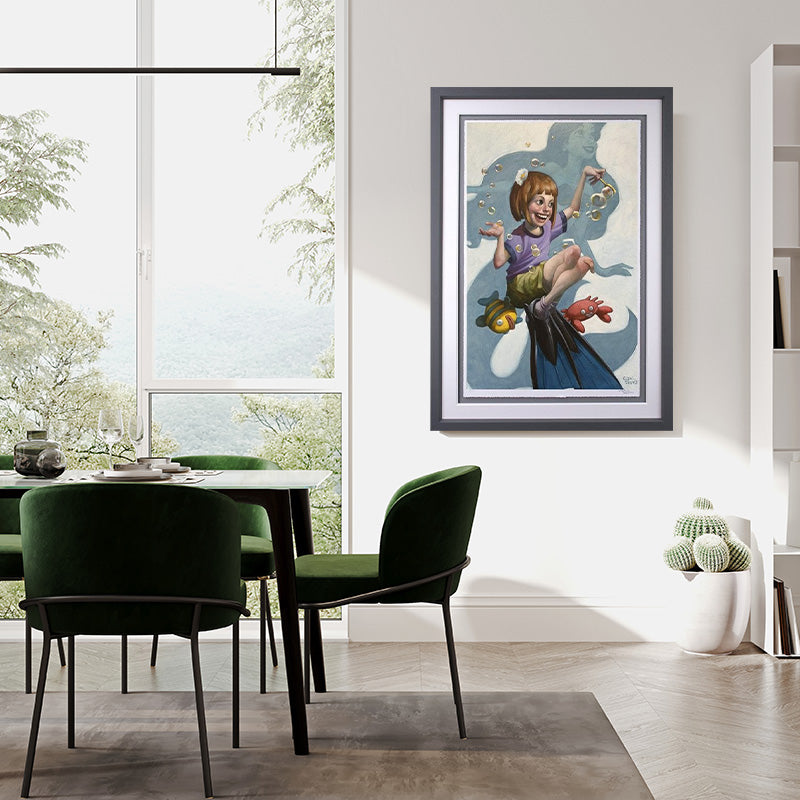 Please refer to the description above. Depending on the artwork a selection of finishes can be made from the colour of the frame to the glass option (where applicable) All sizes for the respective artwork are mentioned in the artworks description.