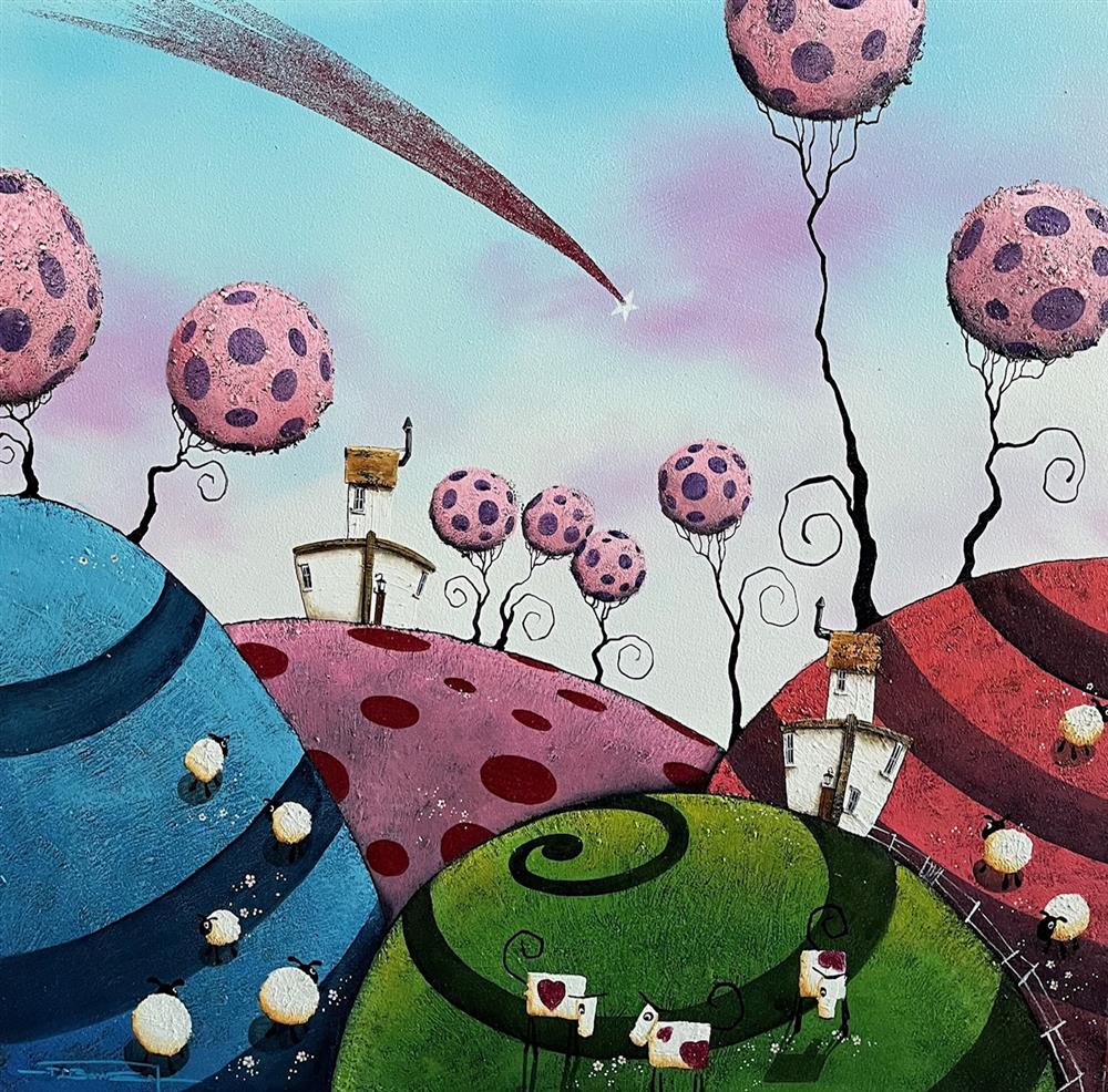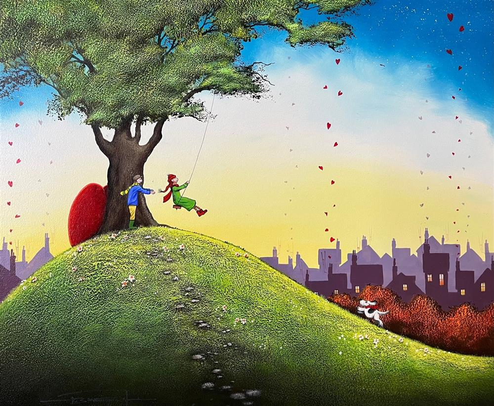 Declaring painting as his first love, Dale more recently returned his paintbrushes to canvas, and has experienced phenomenal success in doing so. His playful acrylic originals are packed with colour and texture, proving themselves to be extremely popular with adults and children alike. Animals, people and vehicles are hidden amongst the vibrant, whimsical landscapes, with the humorous titles of each work revealing the artists evident affection for each scene.
