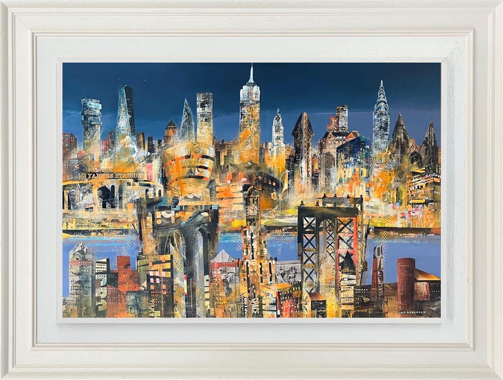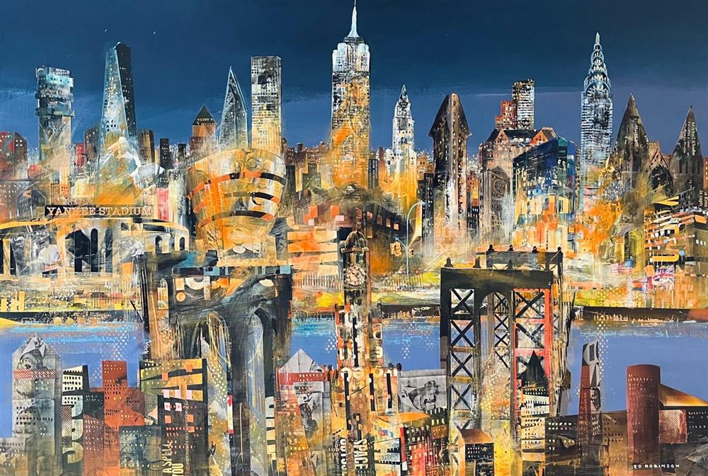 Ed Robinson’s bold and vibrant media compositions are a blend of printed letters, watercolours, acrylics, and oils - a style he first experimented with 35 years ago when he was still a student. He works with a fairly light palette, but increasingly is becoming emboldened, and through the mixed media, his paintings explore both light and texture.