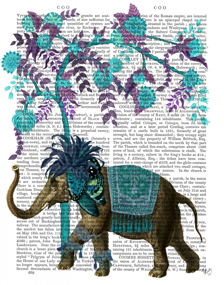 Elephant wall art can take many forms – most popular, are realistic painting that capture the natural beauty of an elephant. Ben Jeffrey creates stunning portraits of elephants that are imbued with emotion and crafted with an inherent sensitivity to the animal. He captures the essence and character of his gentle giants, using natural colour pallets reminiscent of the water, earth and sky. However, many artists also used mixed media and layering, incorporating the silks and patterning of India. Fab Funky creations are full of personality, flair and bold colours.