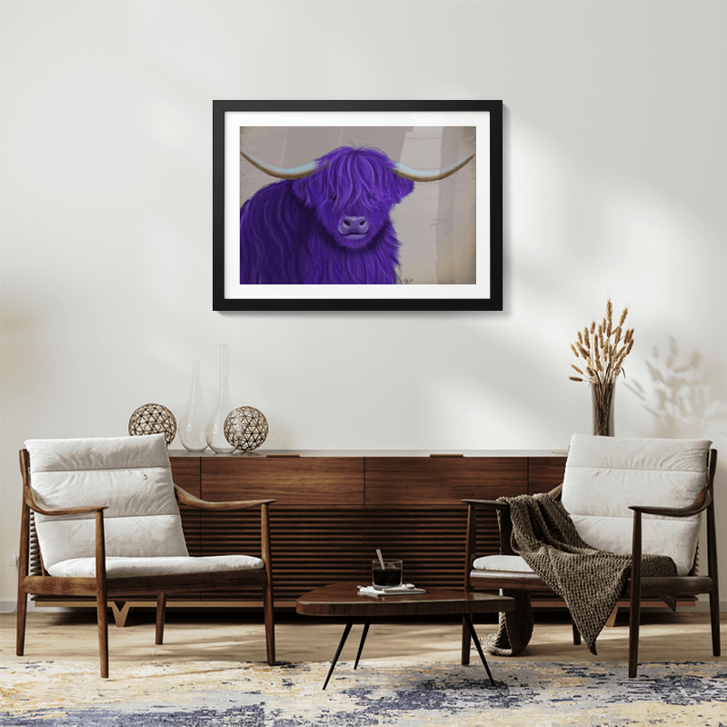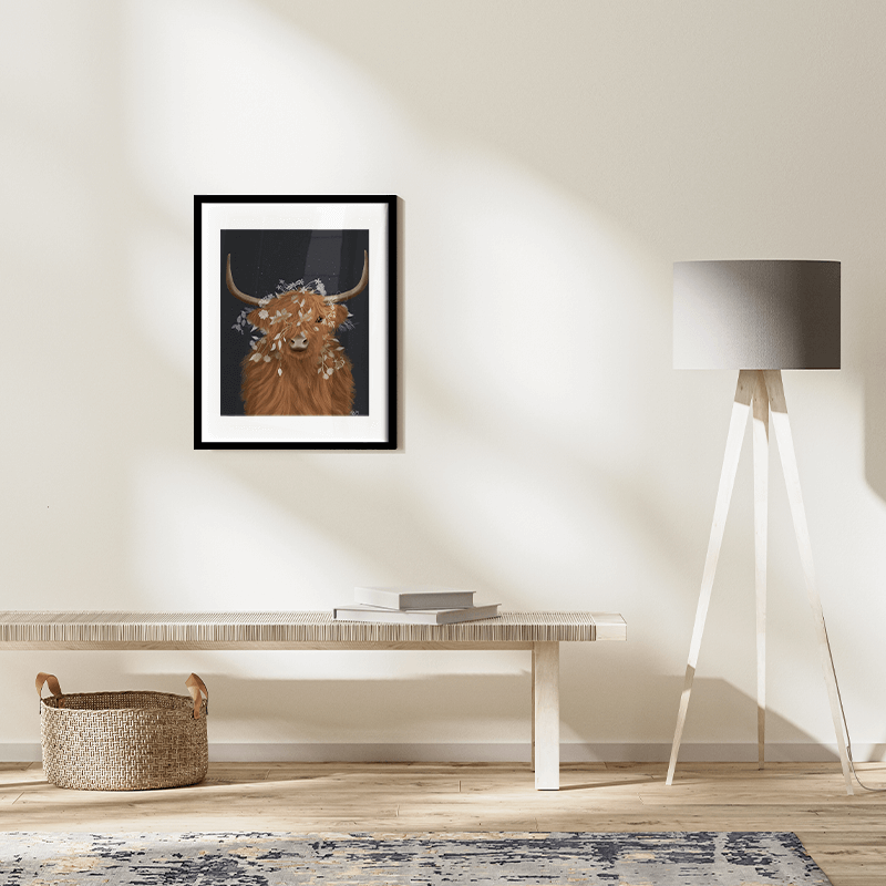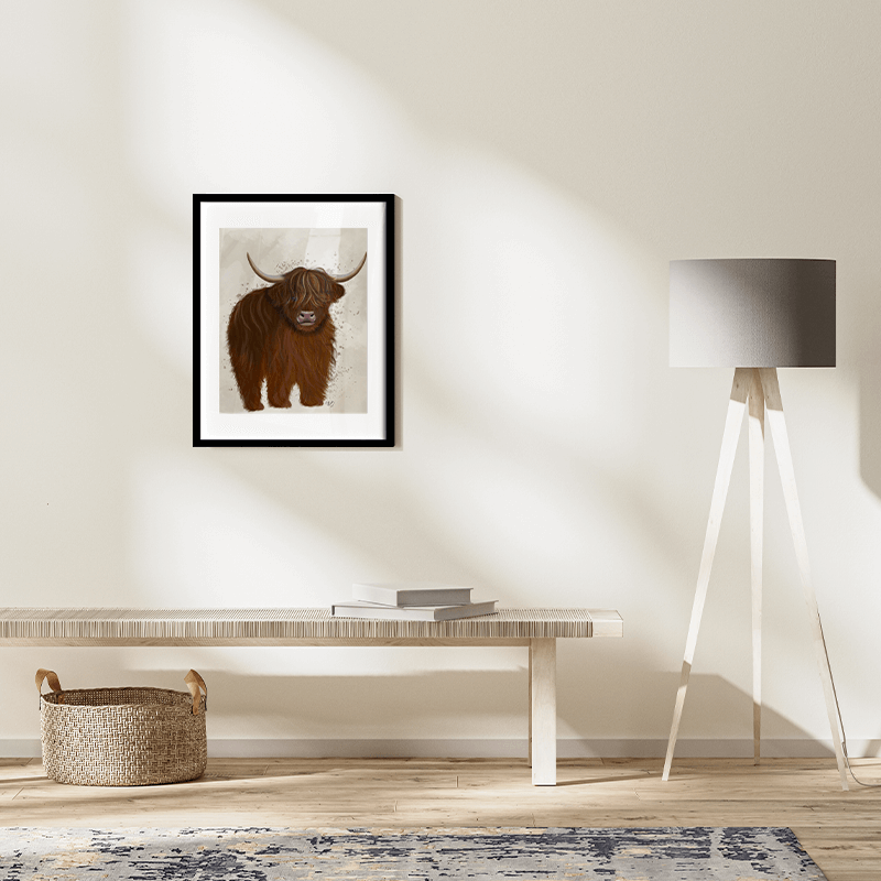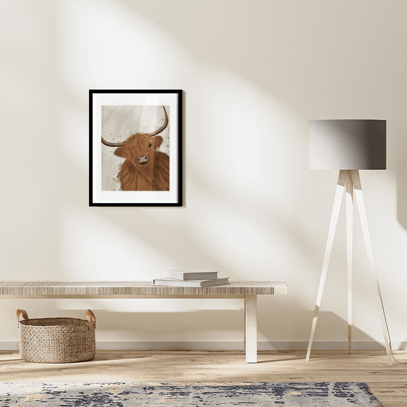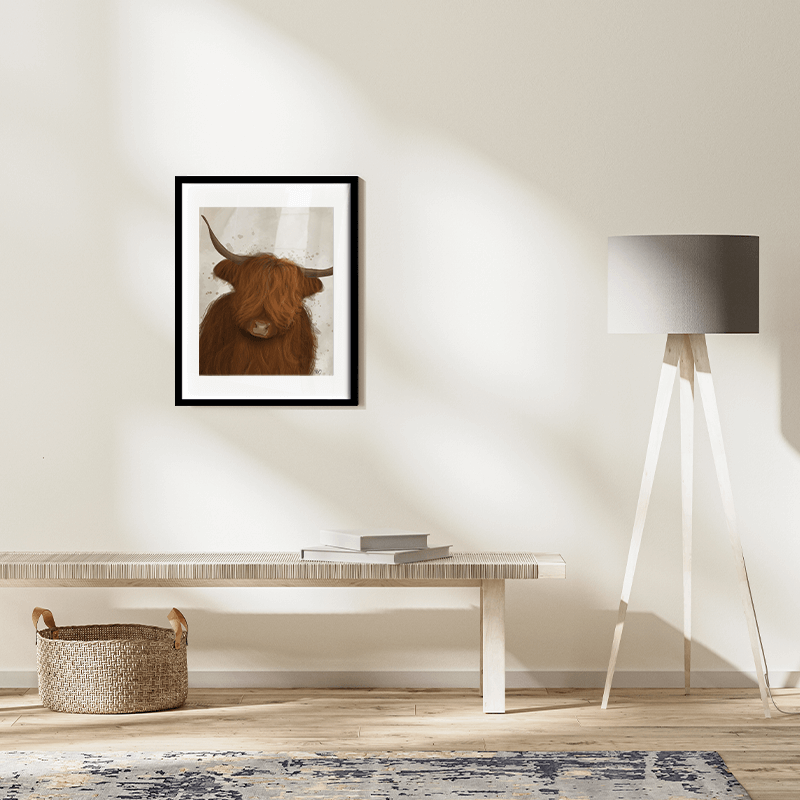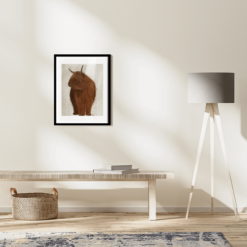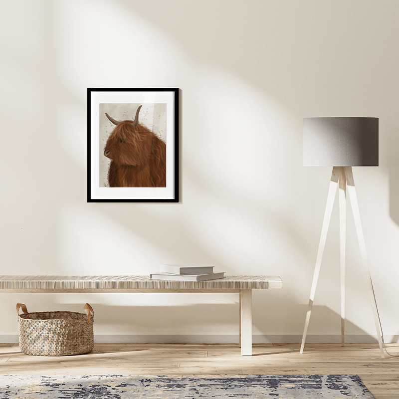 Choosing a piece of highland cow wall art for your home is likely to be a charming experience! For many people, they simply fall in love with the unique character of a piece – here are some more tips for choosing highland cow art for your space: