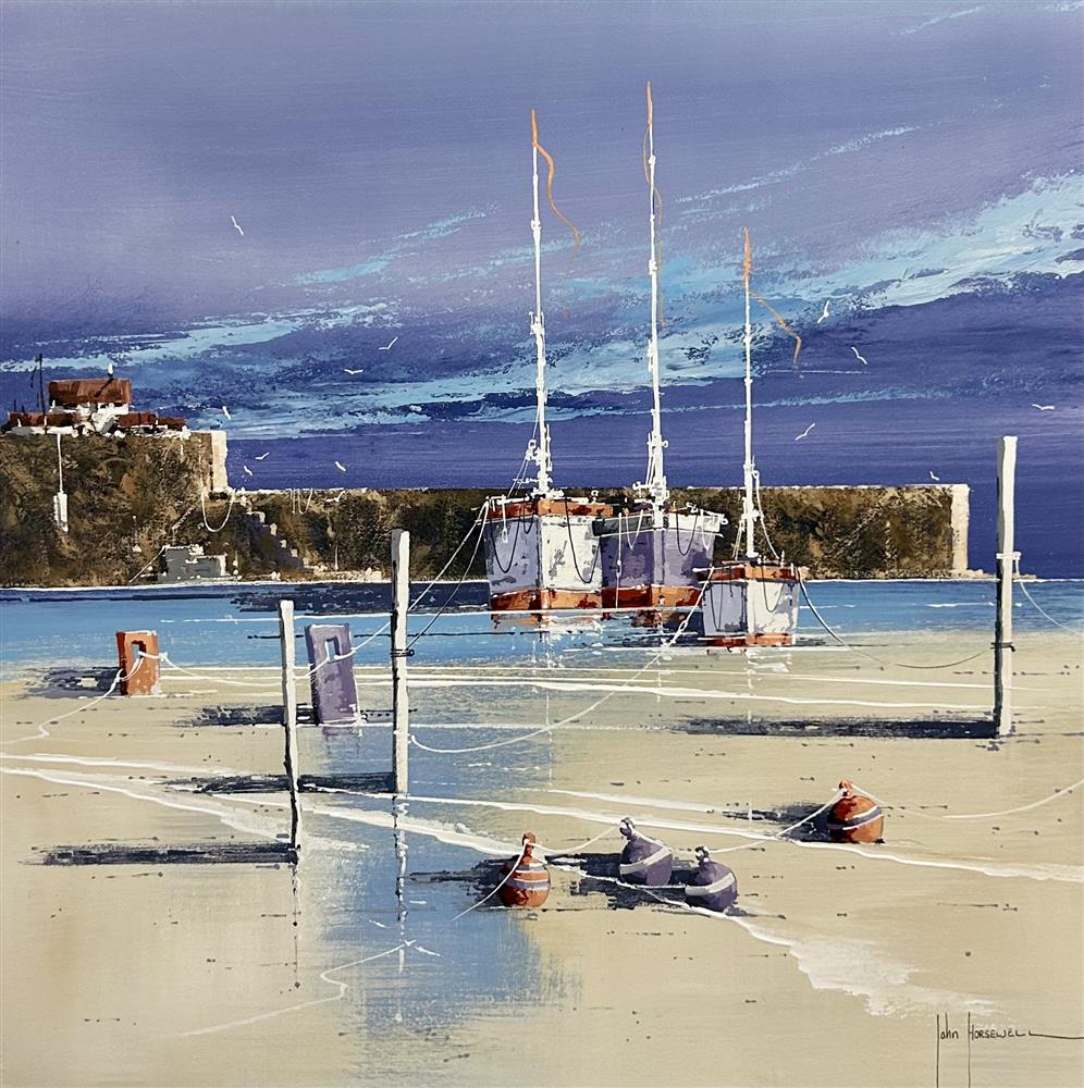 Horsewell most frequently chooses to depict his own most loved landscapes, from the vistas of Southern Europe to the tranquil shores of Florida, where he spends much of his time. His paintings are executed using both brushes and palette knives, giving them their distinctive texture. The flair with which he paints communicates the pleasure of the location he has reveled in, inviting the viewer to share in the experience with him.