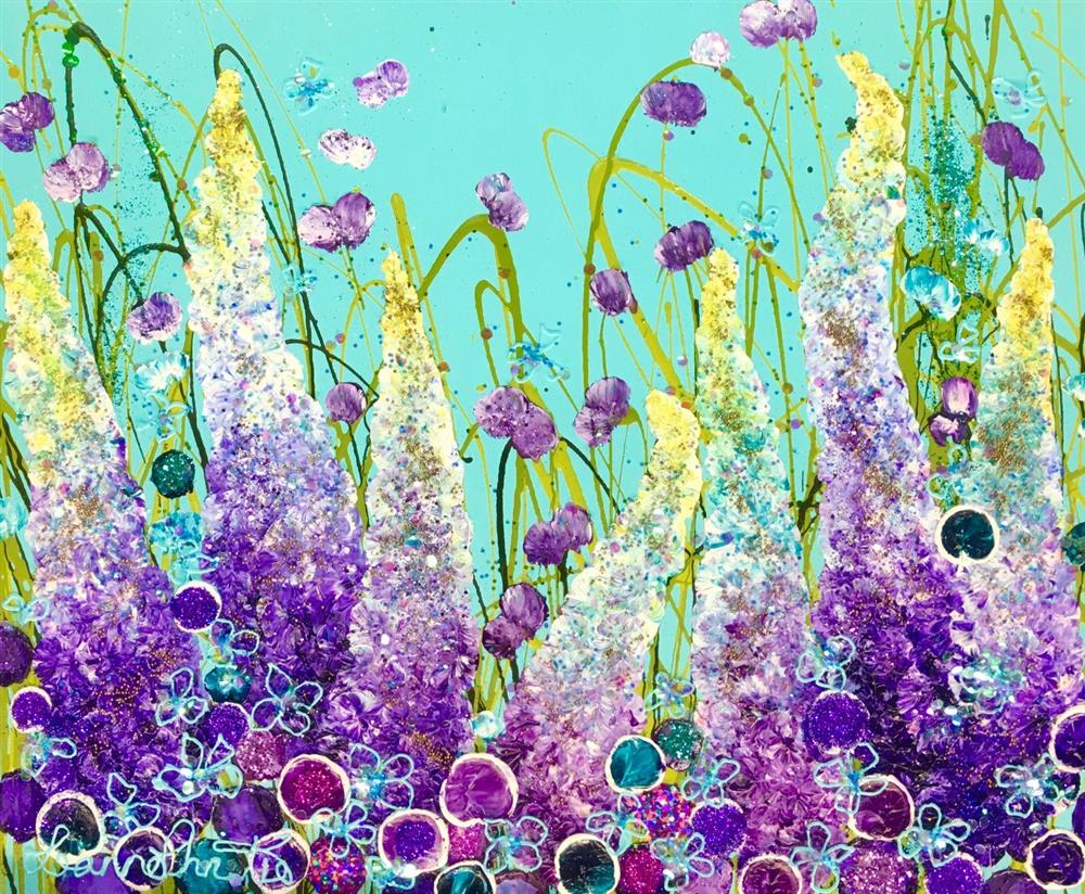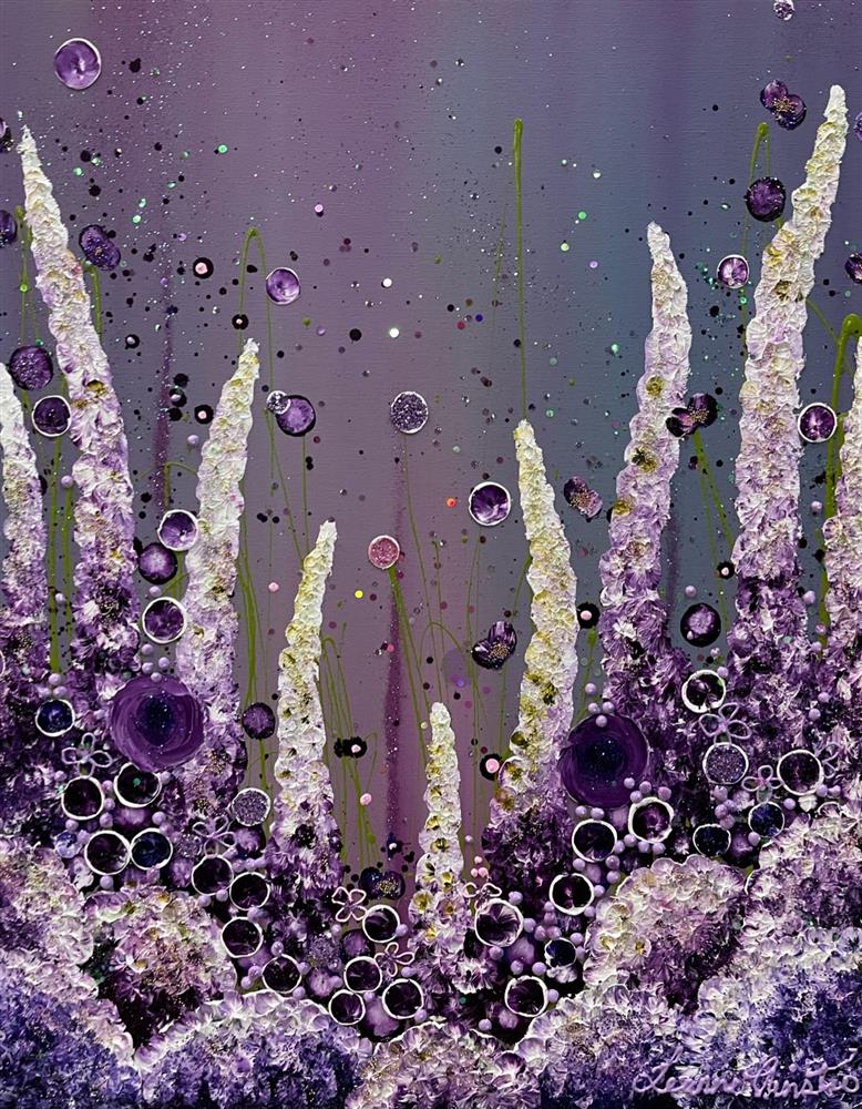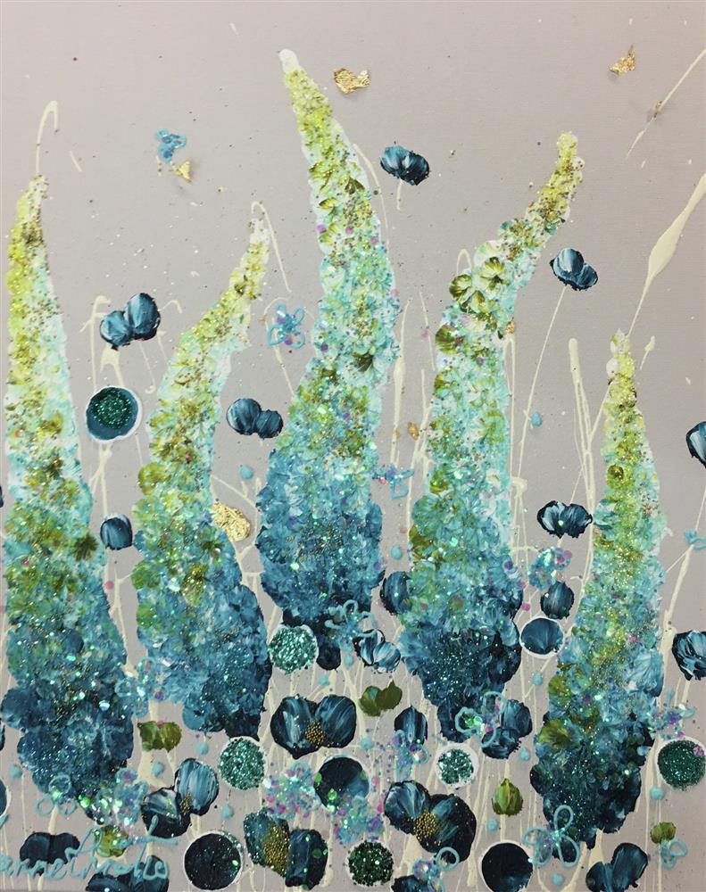 The Paintings: All of Leanne's paintings are predominately oil, embellished with glitter, jewels and gold leaf. These unique paintings, regardless of whether they are flowerscapes, seascapes, waterscapes or moorlands, are textured with an almost three dimensional feel. The observer feels drawn in to the painting. Depending on the time of day or year, the light plays a magical part in making the paintings come to life.