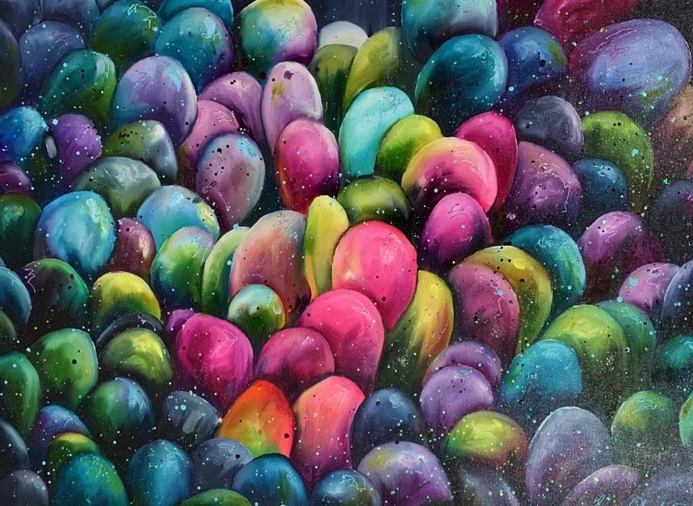 The Flowerscapes: These vibrant absorbing paintings have an amazing amount of detail in them. Using high quality oil paint and other mediums, Leanne captures an ethereal landscape with glistening flower petals that seduces the observer into touching the artwork. Just as an English country garden changes through he seasons and moves towards the sun, enchantingly the paintings seem to mimic nature.