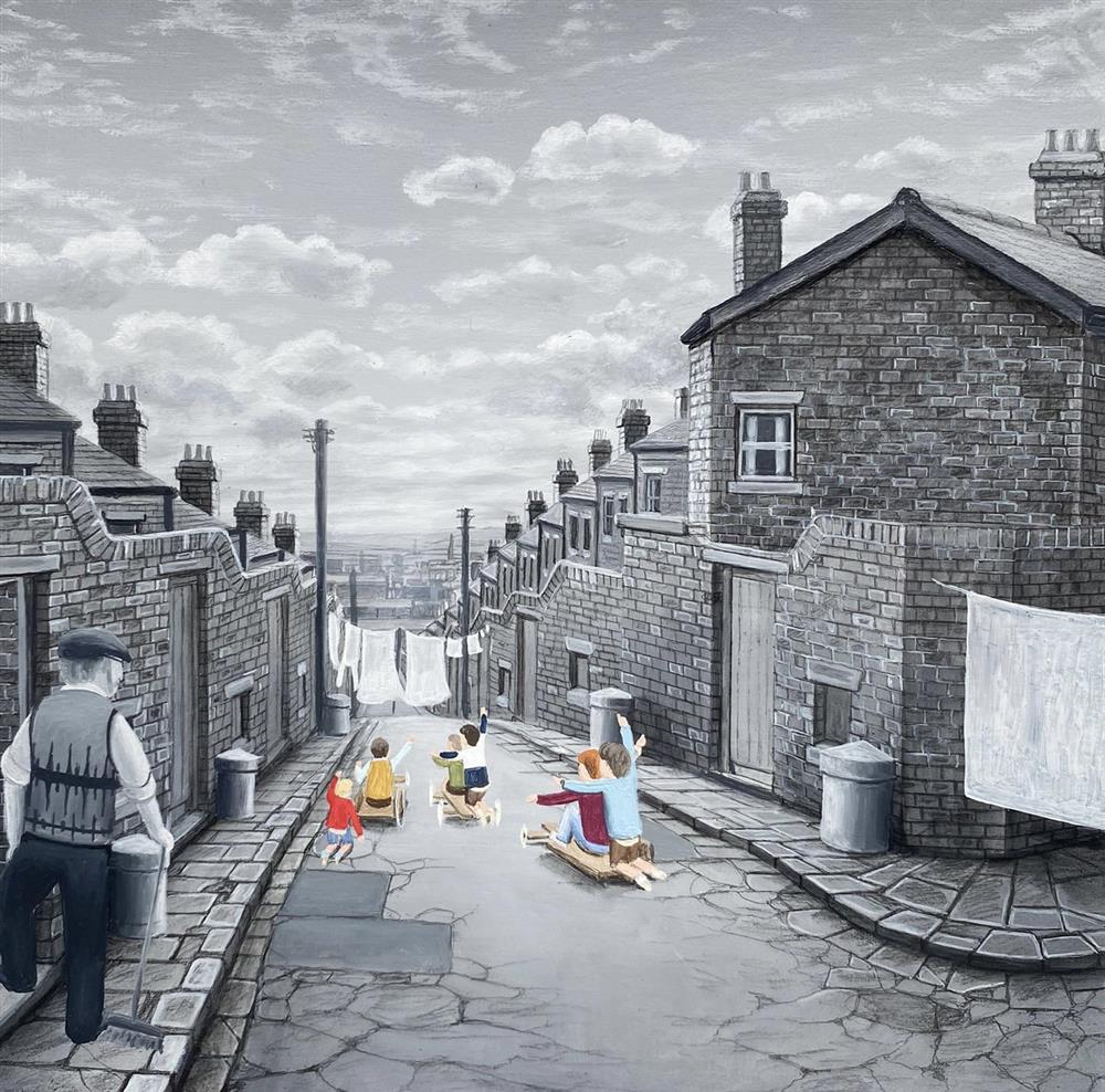 Lambert relocated to Warwickshire with his family in 1996, where he focused on the development of his technique. It was on leaving Newcastle that he began to appreciate the nature of his upbringing; what he had once seen as a concrete jungle now seeming strangely beautiful. Taking inspiration from his childhood, Lamberts pieces have a strong sense of nostalgia, evoking fond memories of a youth that many can relate to.