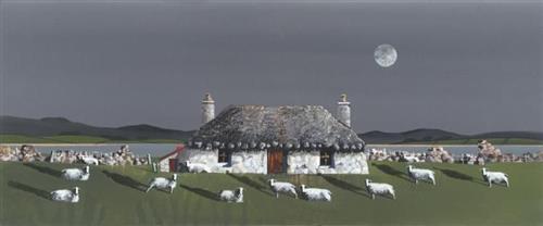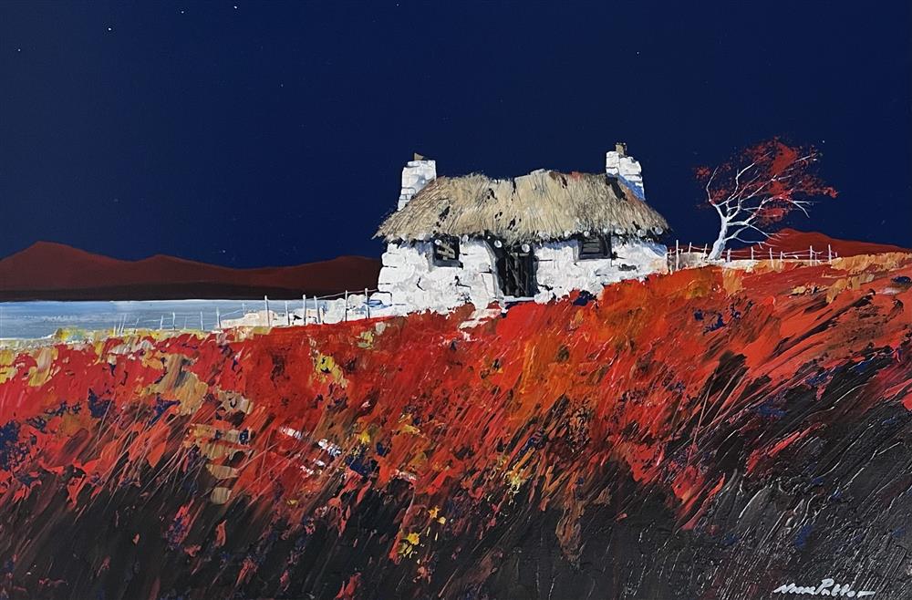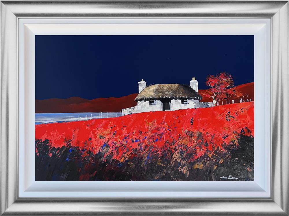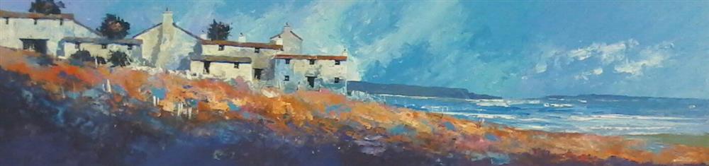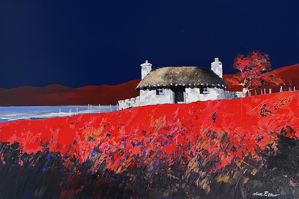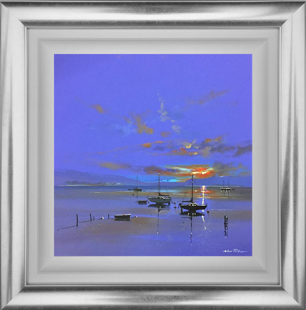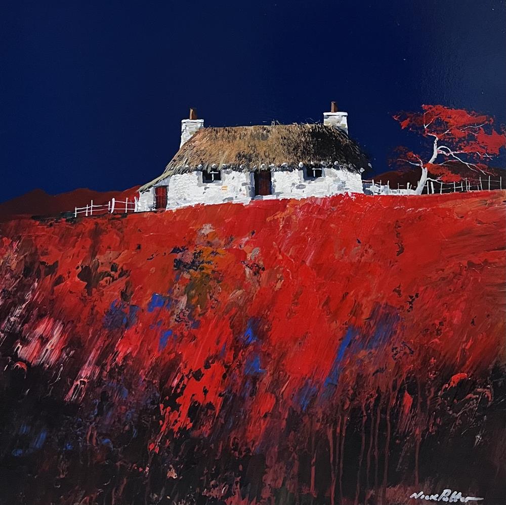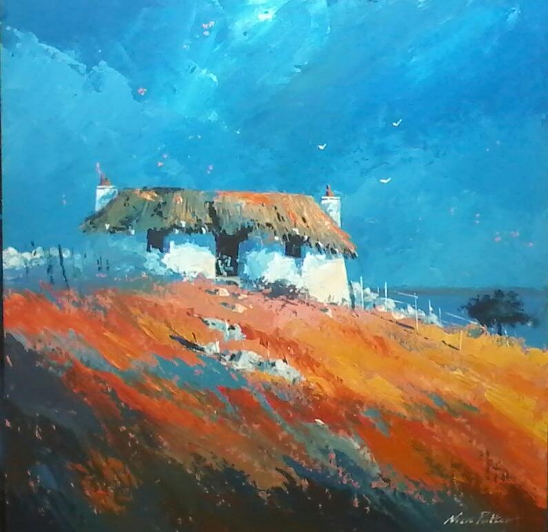 Nick now lives yards from the sea in Embleton on the fantastic Northumberland coast, where he is inspired to paint every single day. He paints in his garden studio listening to Audio books, and often these are often unabridged and can last up to 17 hours. He is so attuned to this way of working that he cannot paint without them, and they are as much a part of the painting process as the paint or canvas.