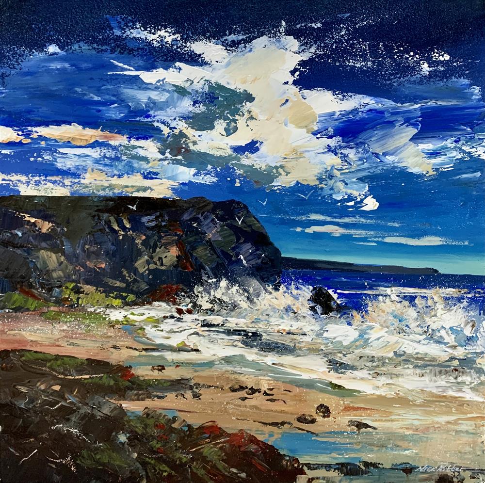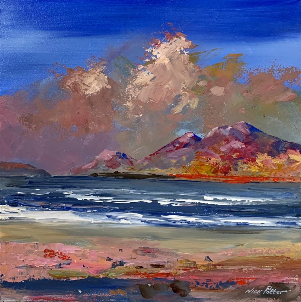 Nick paints mainly in acrylics and acrylic inks, loving their versatility and quick- drying properties, but he also employs various mixed media techniques and textures, and is known for his variety of painting styles. Nicks love of wild landscapes and seascapes fuels his desire to paint them, alongside his concerns regarding the pressures upon them in todays environmentally unfriendly world.