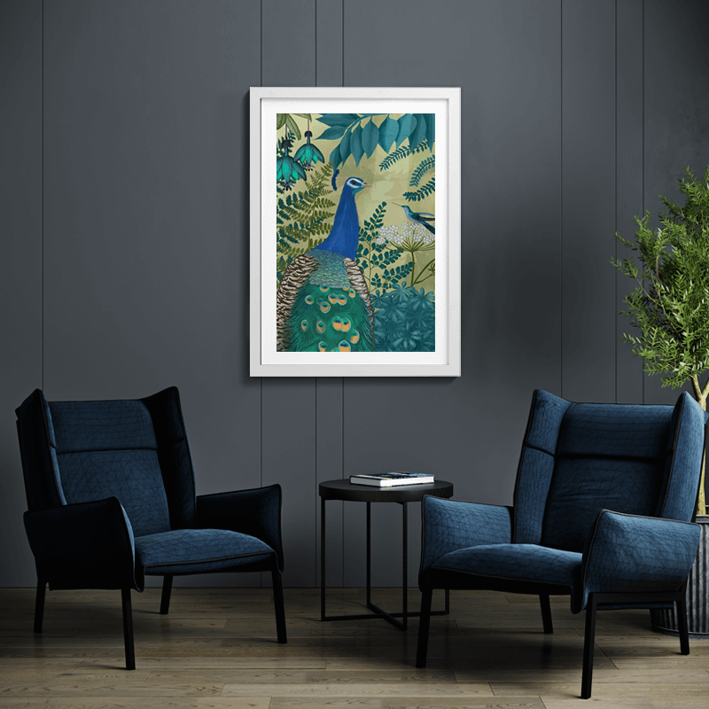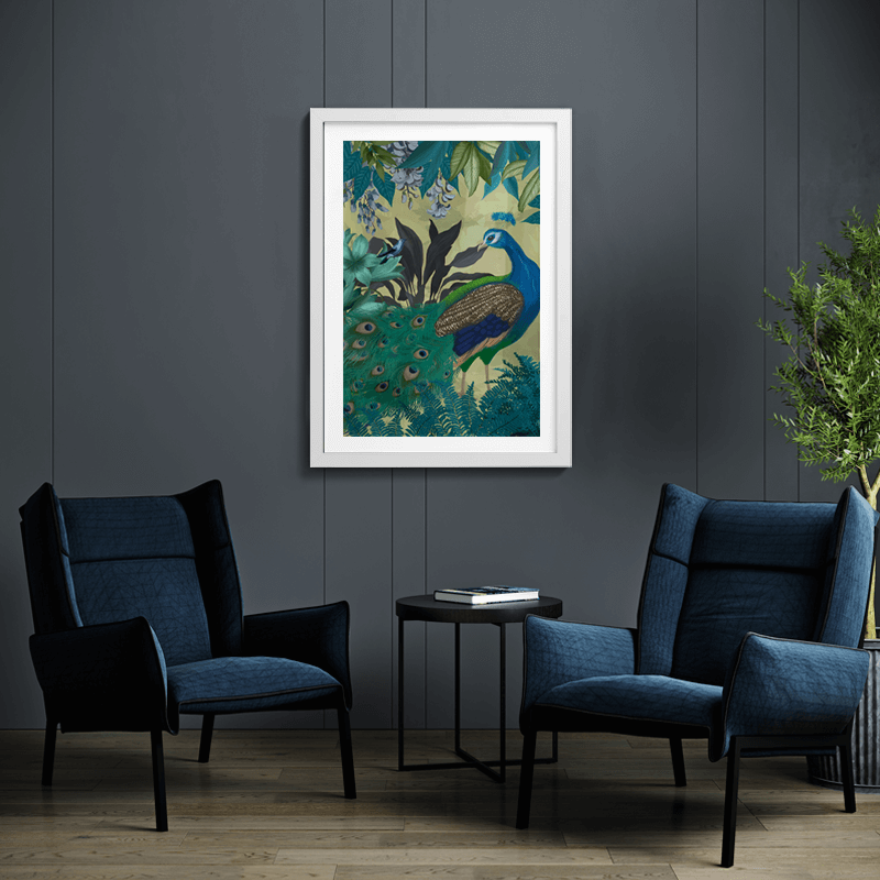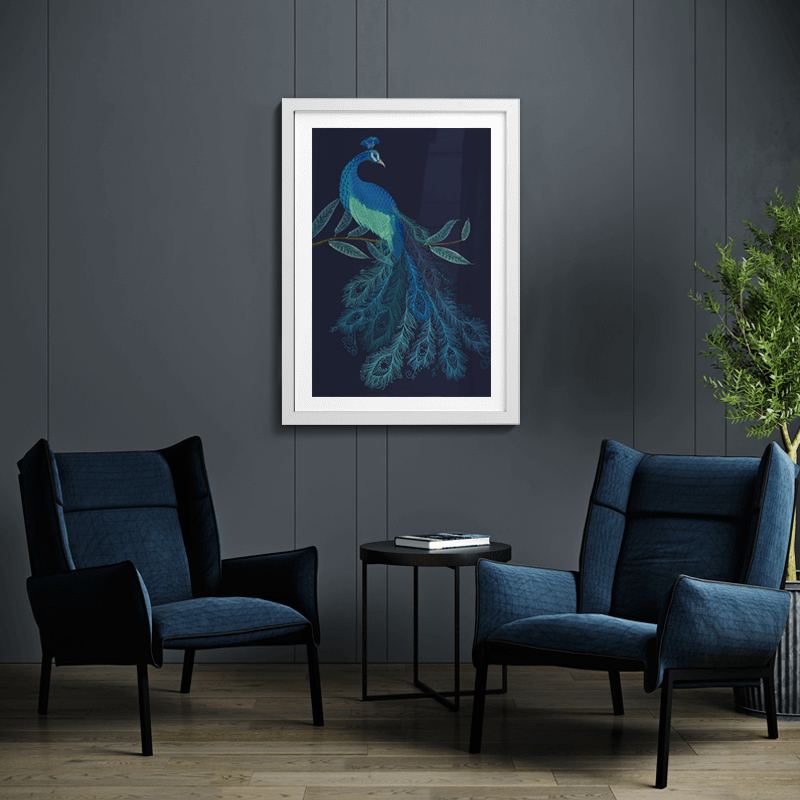 When choosing peacock wall art for your home, think about the incredible colouring of a peacock; the iridescent blues, emerald greens and glittering golds create a jewel toned dream and will brighten any home. Consider how the light of your space will impact your artwork; whether its artificial light that can accentuate finer details, or soft daylight that will enhance colours, your piece of art will shift from morning to evening.