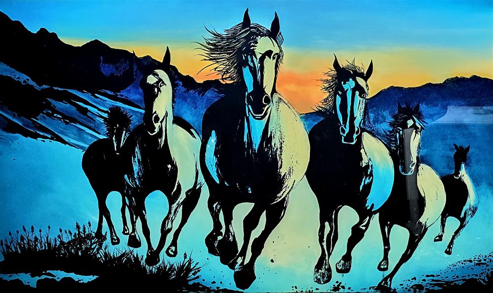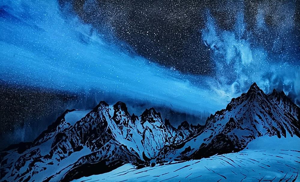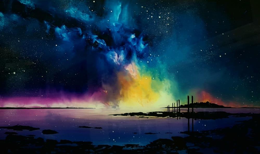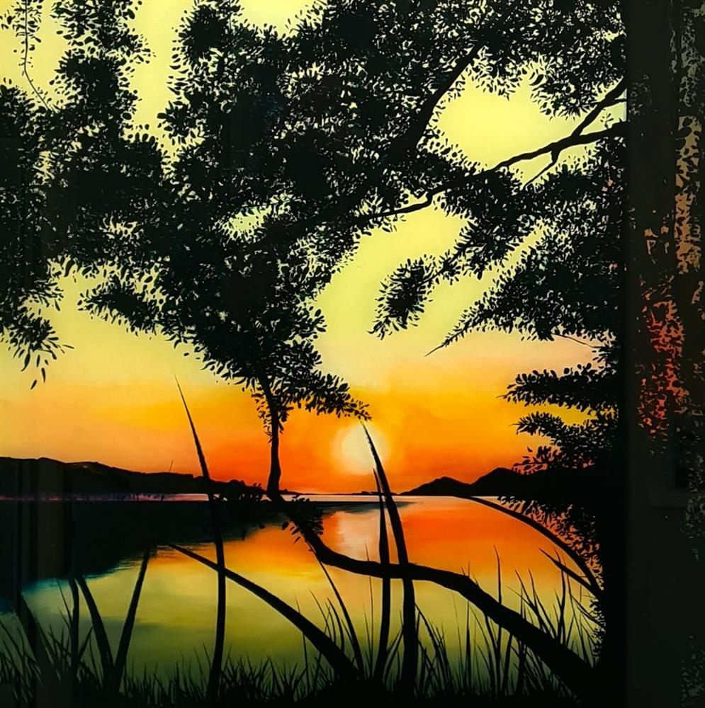 All his paintings have been created from spectacular scenes witnessed first and photographed by himself then created in the studio using a unique technique of painting in which he paints backwards on the opposite side of glass to create mesmerizing landscapes and seascapes. His unconventional method was honed after experimenting with various surface to achieve the results he sort after. Working on glass allows him to create a softer gradient of colour and tone and a stronger range of contrast allowing him to create the vivid scenes he could not achieve on canvas.