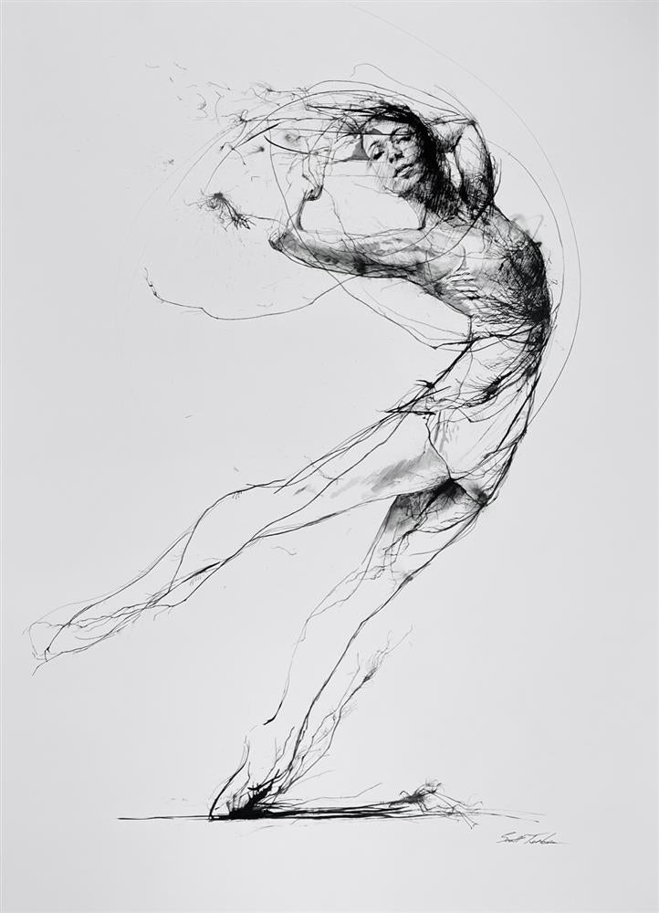 Each time I pick up my tools, I am running out onto a tightrope I can't stop. I have to keep going to get to the other side. There is no time to question myself or correct mistakes because I have to get the marks down with confidence. I don't get a second chance. I can't rework it; every mark has to flow out of me to give the figure movement. If I haven't studied the lines, if I don't fully understand them the drawing just won't work.